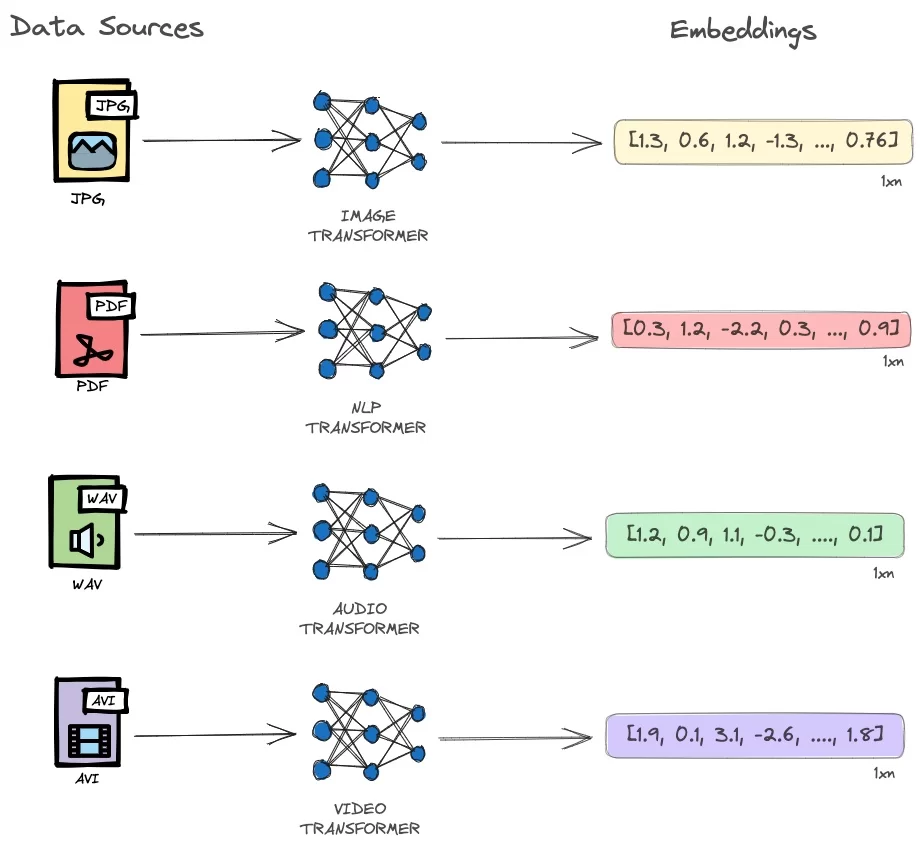 encodeanddecodeinformation, functionality is often multi-modal and can interact based on their vector representations.