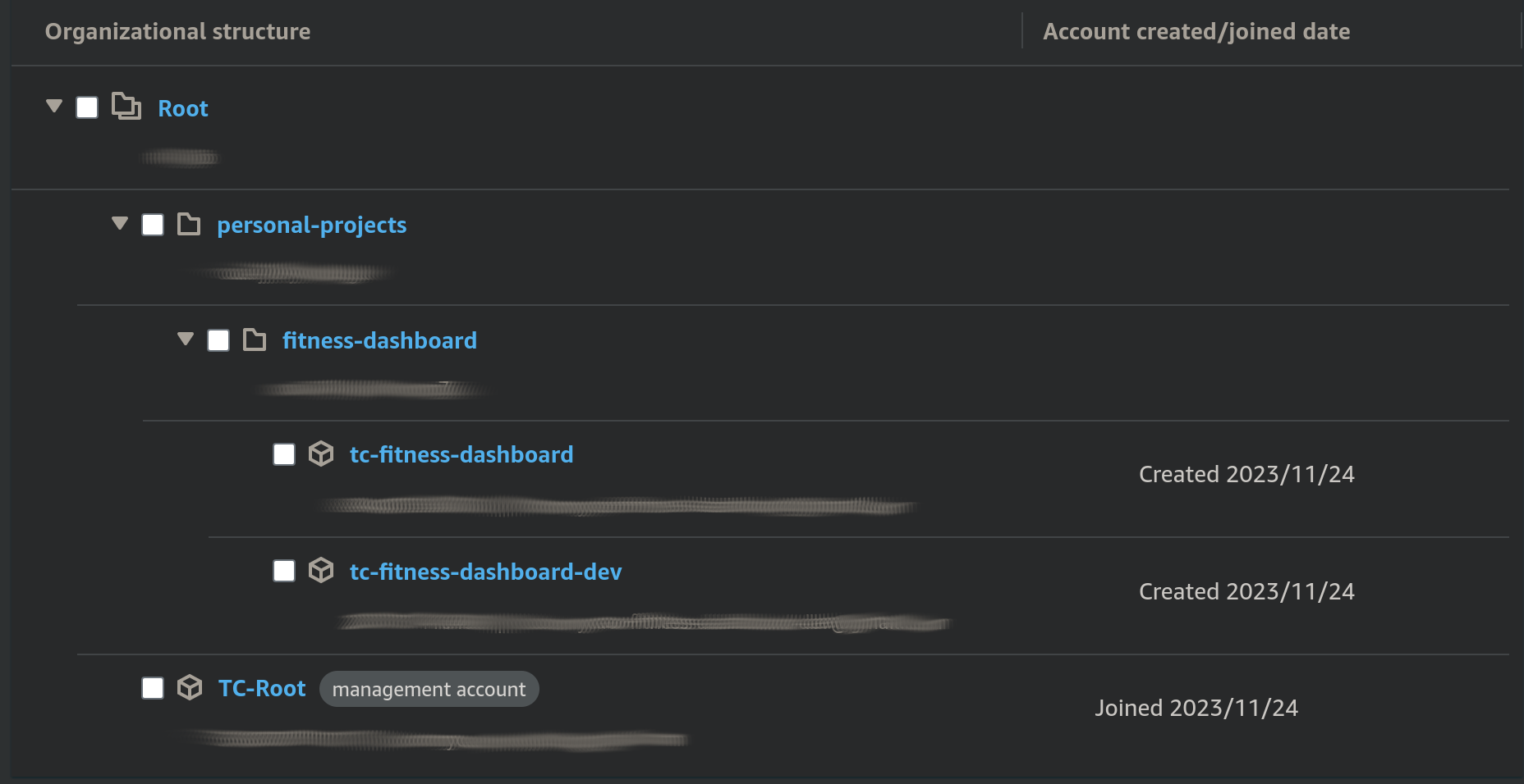- Click on that newly created OU, and create another one with the specific project name, e.g above “fitness-dashboard”.