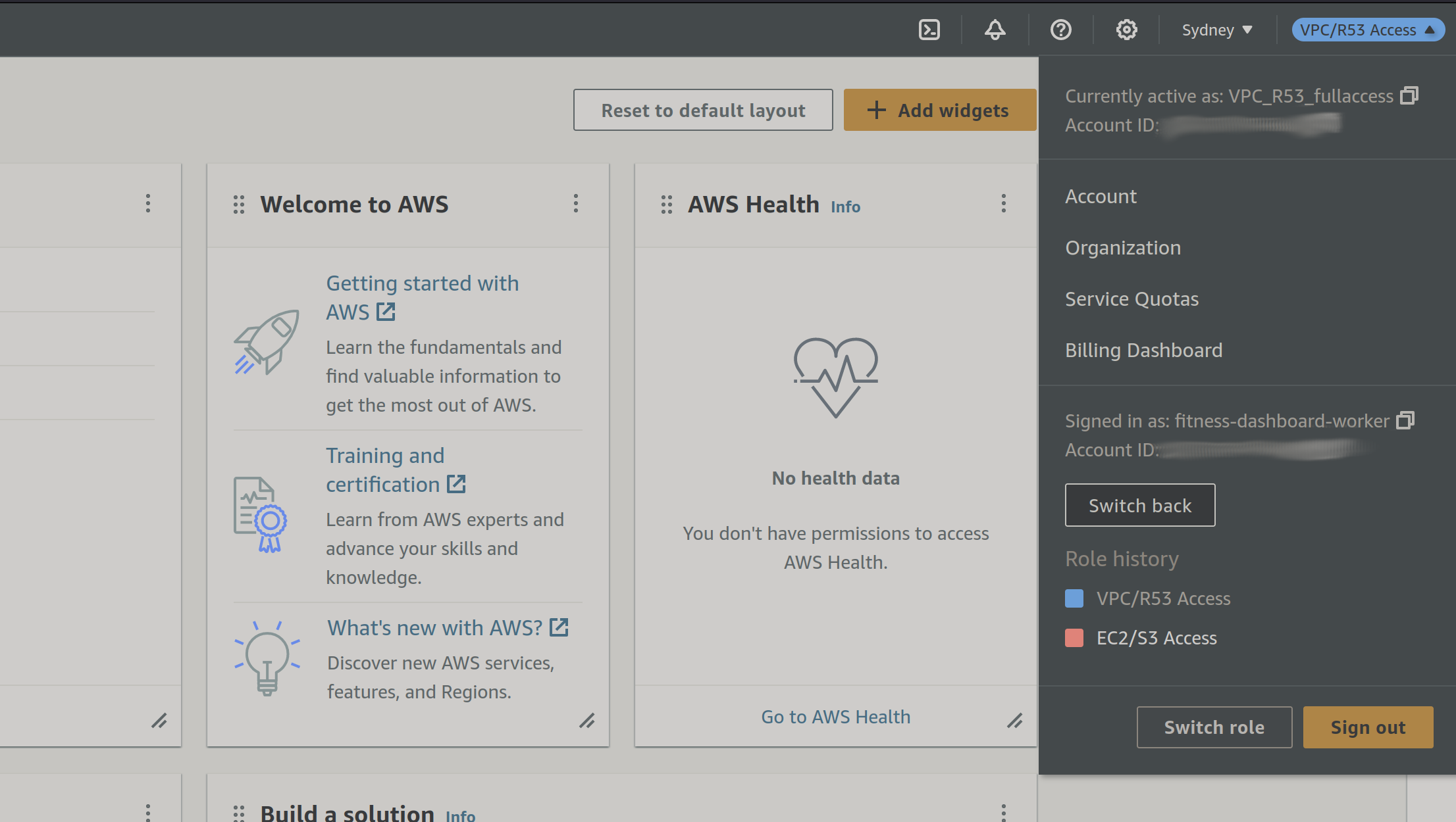 - Click switch role. Switched roles will be shown in the top-right menu for future convenience.